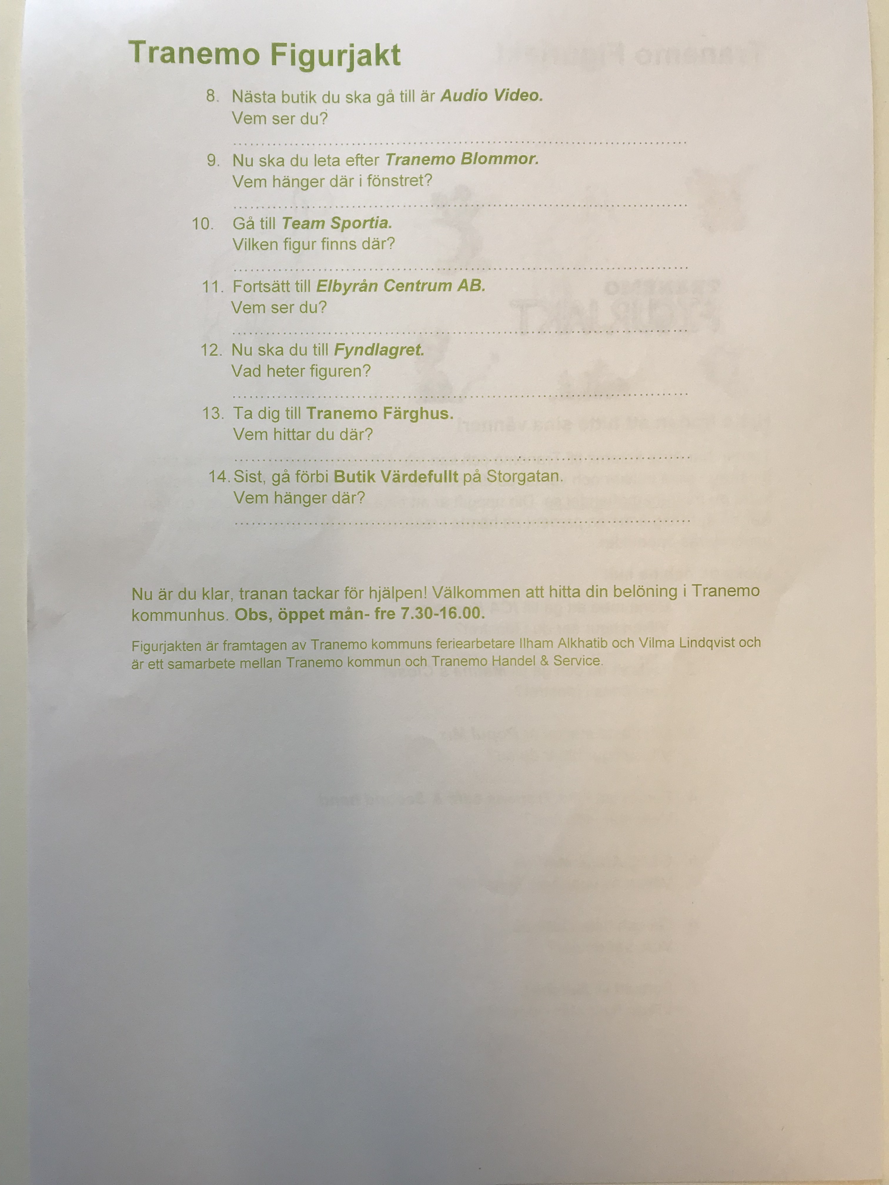 Tranemo figurjakt är ett samarbete mellan Tranemo kommun och Tranemo Handel & Service.